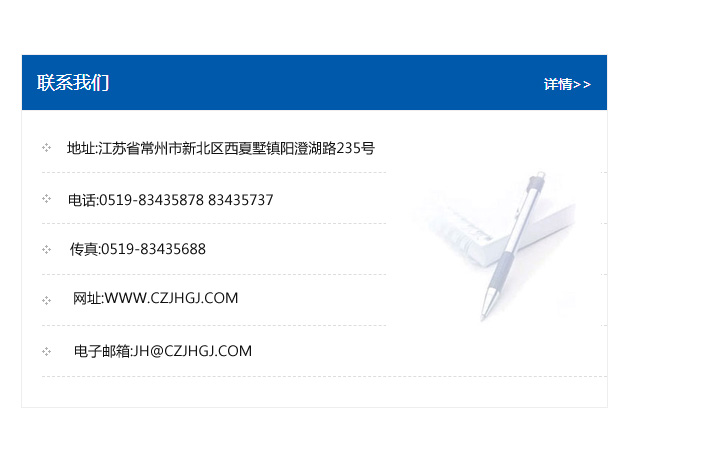 傳真:0519-83435688    郵編:213135    網址:WWW.czjhgj_com.npsywj.com    電子郵箱:JH@czjhgj_com.npsywj.com
